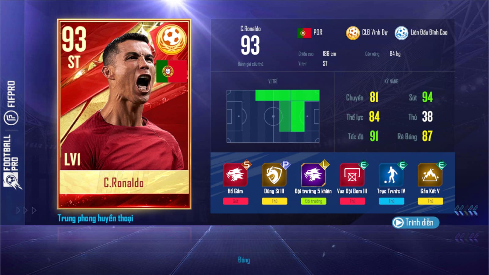 + Là CT trong Top 11 CT xuất sắc năm 2023 nên đây cũng là loại thẻ có các CT đạt mốc 93, đủ skill khá đa dạng về vị trí và hỗ trợ rất tốt việc đáp ứng yêu cầu của đội trưởng Huyền Thoại khi cần cả Quốc Tịch lẫn CLB