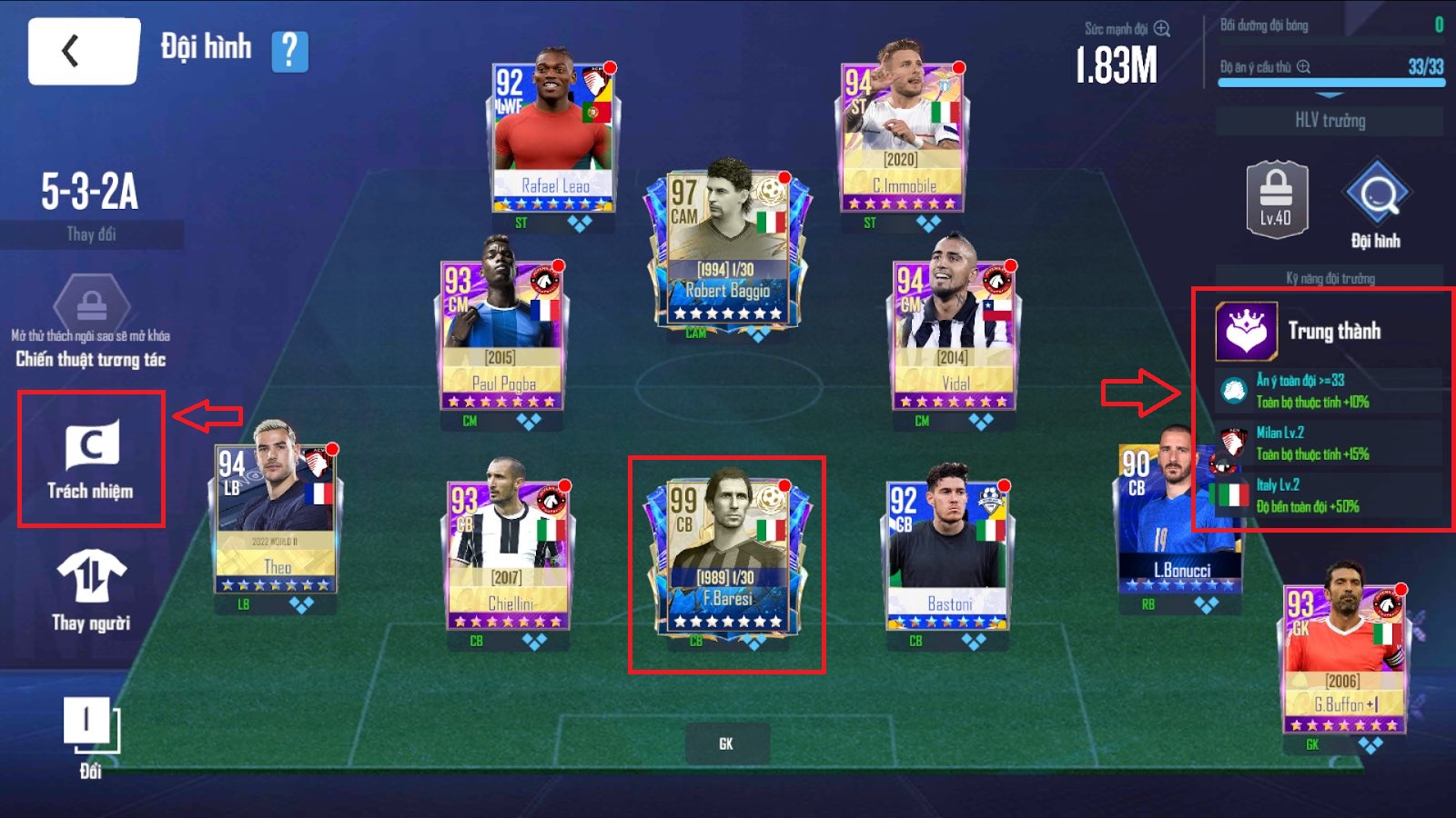 - Cá nhân thẻ ICON sẽ bổ trợ cho đội hình +1 Giải Đấu, đây là 1 điểm bổ trợ hợp lý khi người chơi xây dựng đội hình và cần đạt đủ các Ăn Ý.